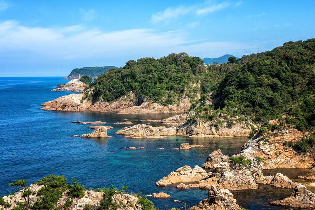 浦富海岸は、透明度抜群の海とリアス式海岸が織りなす「山陰の松島」。荒々しい岩肌とコバルトブルーの海が織りなす景観は、自然が創り上げたダイナミックな芸術です。