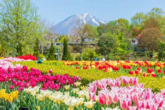 見どころは、大山の雄大な姿と色鮮やかな花のパノラマが織りなす非日常の光景。特に春のチューリップや夏のユリは、圧巻の美しさで魅了してくれます♡