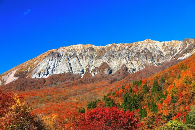 一年で最も美しいのは、紅葉の季節。山肌全体が赤や黄色に染まり、切り立った岩と燃えるような木の葉が織りなすパノラマは息をのむ大迫力です!