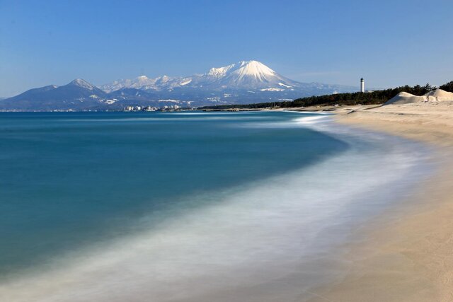 魅力は、青い海と緑の松林が描く美しいコントラスト。特に松林越しに望む大山の姿は、他では見られない海×山の雄大なパノラマです!