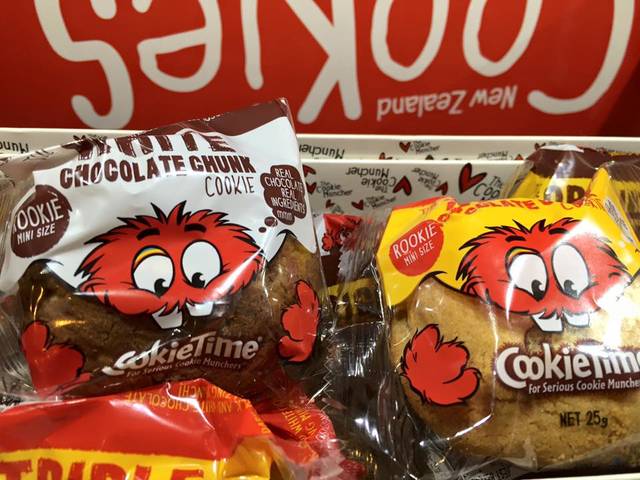 クライストチャーチで1983年に創業したクッキータイムは、今や、ニュージーランドにいる人なら誰でも知っている知名度も人気もナンバーワンのクッキー屋さんです。南島のクイーンズタウンにも店舗があります。入口には広報担当のクッキーマンチャー、店内では、可愛らしいユニホームのクッキーガールズたちが笑顔で迎えてくれます。