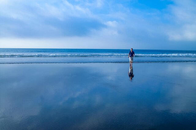 九十九里浜で見られるリフレクションの魅力は、なんといってもその広大なスケール。干潮時に海の中に入って辺りを見渡せば、空とそれを映す水の鏡だけの世界が広がります♡