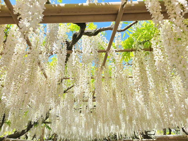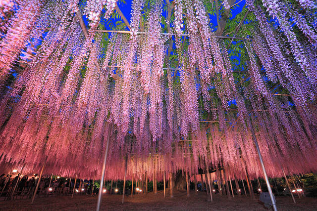 「世界の夢の旅行先10カ所」に選ばれており、時期によって、順に薄紅色→紫色→白色→黄色の藤が咲きます。