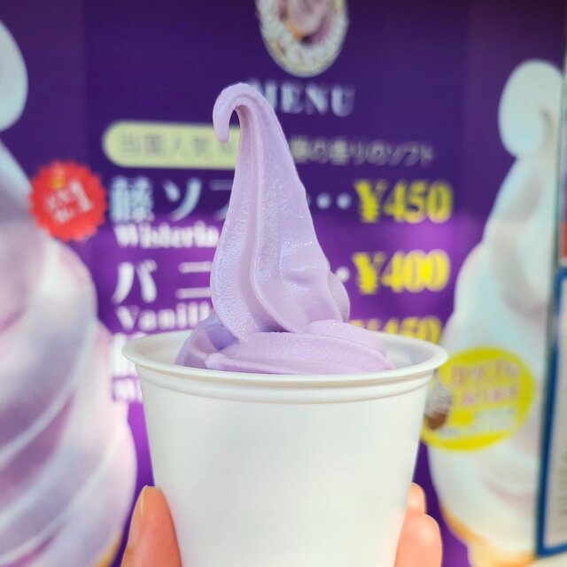 栃木県なのでとちおとめソフトクリームを食べたいところですが、やっぱりこの時期は藤ソフトクリームではないでしょうか?