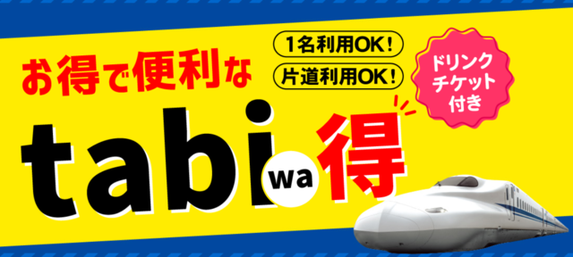 「tabiwa得」とは、tabiwaトラベルサイトで購入できるWESTER会員限定プランで、山陽新幹線(限定ひかり号・限定こだま号)とカフェで使えるドリンクチケット500円付のお得なプランです。