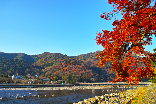 紅葉の見頃は例年11月下旬で、特に嵐山の渡月橋は圧巻です。