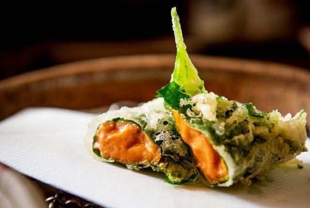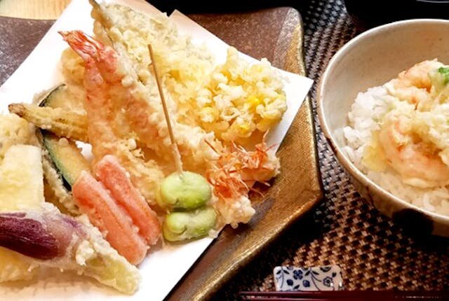 また、ランチメニューには名物「塩天丼」や天とろ丼といった、他では見かけないメニューがあるのも魅力。ディナーでは天ぷらを13~16種味わえるコースがあり、店主が自家農園で育てた無農薬野菜の天ぷらを堪能できますよ♡