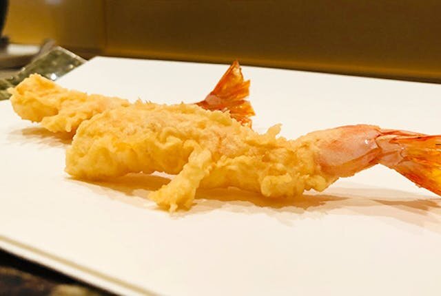 個室ではコース、テーブル席では天ぷら定食や天丼を提供しています。店の名物は、芝海老と青柳の貝柱を使った「雷神揚げ」。雷神の雷太鼓に似ていることから常連の仏文学者が名付けた大きなかき揚げで、外はサクサク、中はプリプリの絶品ですよ♡