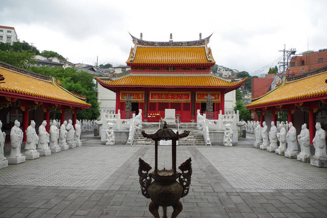 意匠を凝らした屋根瓦や、実物大の七十二賢人の石像など、見どころいっぱいのスポットです。