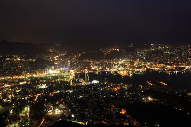 展望台からは長崎港を一望することができ、すり鉢状の地形が生み出す立体的な景観が見られ、長崎で1,2を競う美しさと言われています。