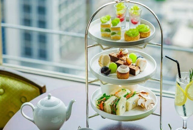 神戸の景色を眺め別世界で過ごすような魅力的なひと時を満喫できる最上階で、旬のフルーツを使用したアフタヌーンティーを楽しめます。