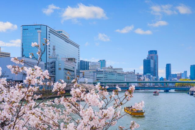 水の都・大阪の中心を流れる大川(旧淀川)。春には造幣局や桜之宮公園の並木が続き、その景観を楽しむために期間限定の「大川さくらクルーズ」などが多数運航されます。