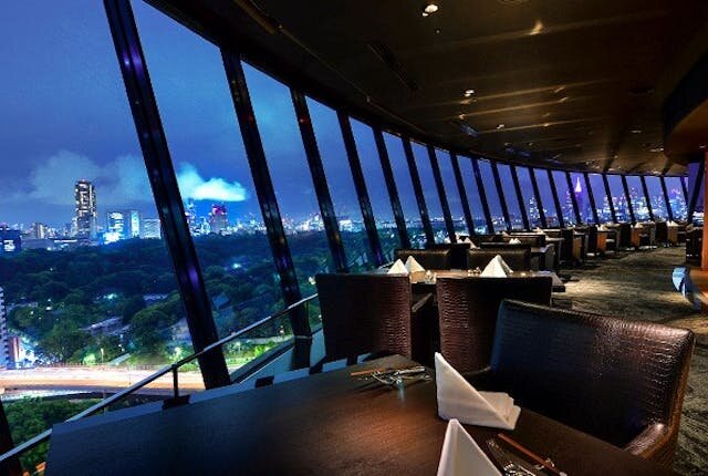 店内は広々としていて、360度見渡せるパノラマビューが自慢。東京の夜景を眺めながら、心ときめくディナータイムを過ごせますよ♪