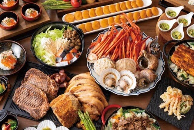 ディナーブッフェでは、和洋中の料理とスイーツ50~60種類、ソフトドリンク30種類のフリーフロー付きで楽しめます。
