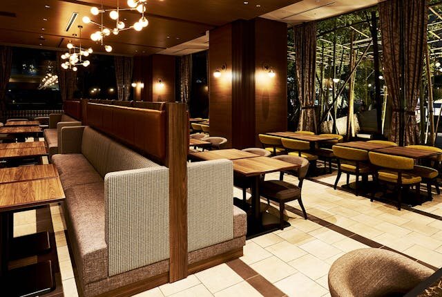 380席と都内最大級の広さを誇るダイニングが特徴。テーブル間にゆとりがあるため、居心地抜群でブッフェ台へもスムーズ。