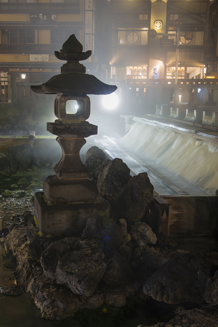 草津温泉の中心に位置する湯畑は、湯の花の恵みを採取するために源泉の温度をぬるめに設定しています。そこから毎分4000lもの熱湯を7つの木樋を通して近隣旅館に運んでいるのです。これは日本一の湧出量を誇るといわれています。夜間にはライトアップされ、幻想的でドラマチックな演出も人気の一つ。