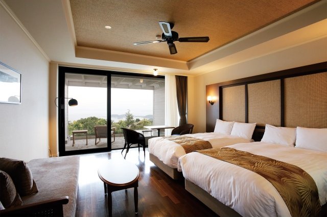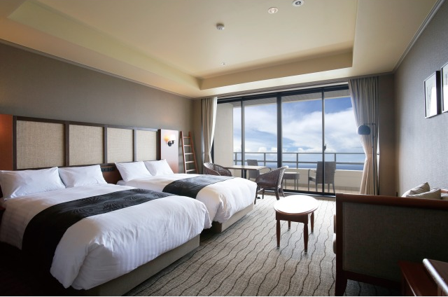 海側の客室は、パノラマの海岸線と地平線を見ながら潮風を感じられます。