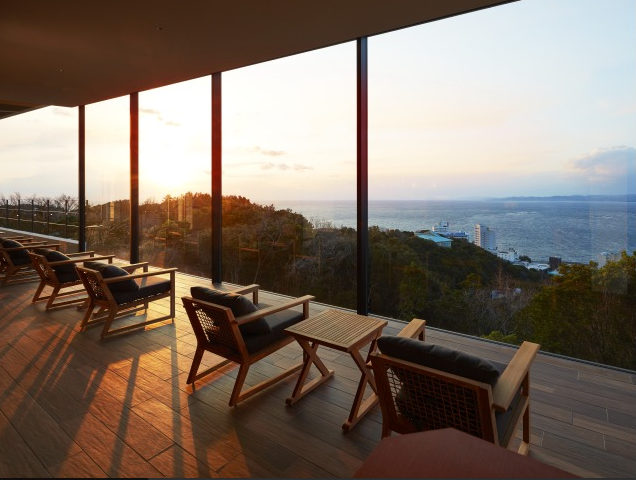 目の前の太平洋や遠く四国まで見渡せる最高の眺望を誇るラウンジ!