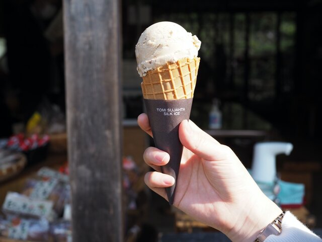妻籠宿を訪れたらぜひおすすめしたいのは「木ノ花屋」の渋皮栗アイスです。アイスには渋皮が入っているので甘すぎず、砕いた栗が入っているのでしっかり食感を楽しめます。他ではなかなか出会えない味なのでぜひ立ち寄ってみてください!