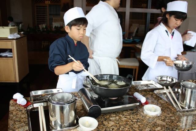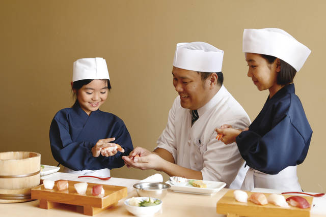専用ユニフォームをまとってすし職人気分を味わえます。和食の職人さんが丁寧に作り方を教えてくれるのでお子様にも人気です♪