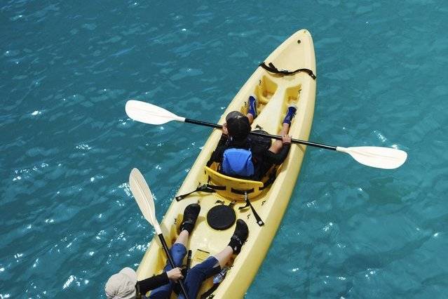 サンゴ礁の上を進み、可愛いトロピカルフィッシュと出会えるシーカヤックツアー。