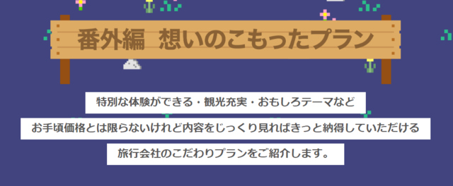 他にも企画担当者の想いがこもった期間限定のツアーや掘り出し物のプラン!?等が掲載される可能性のある番外編のコーナーなどとにかくお得な情報が盛りだくさんです!