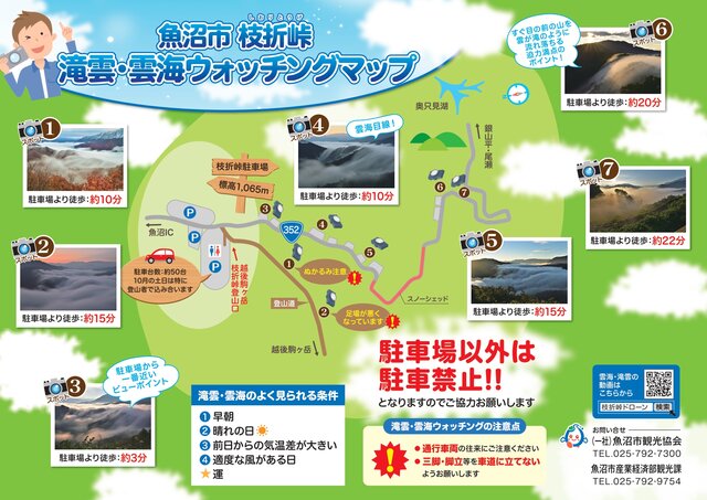車でアクセスでき、道路脇から手軽に滝雲を見ることのできる人気スポットとなっています。