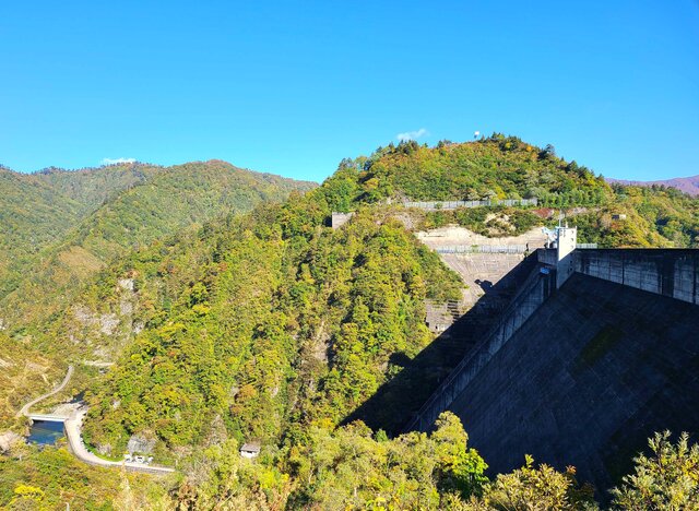 奥只見ダムは奥只見乗船場の近くにある、高さ157m、全長480mの直線重力式コンクリートダム。