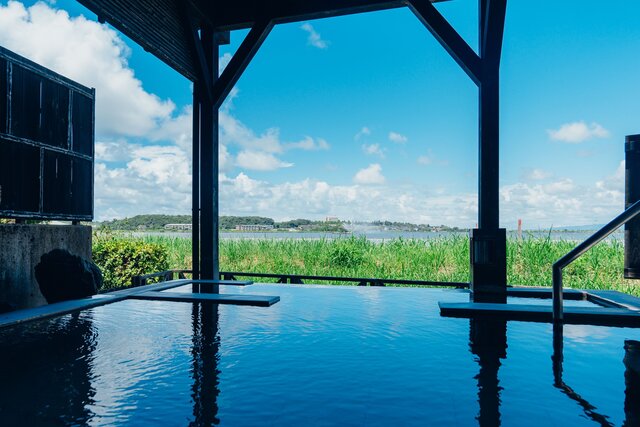 インフィニティプールのように湖面と繋がった内湯、また自然を感じられる露天風呂で、心も体も癒せるひとときを過ごせます。