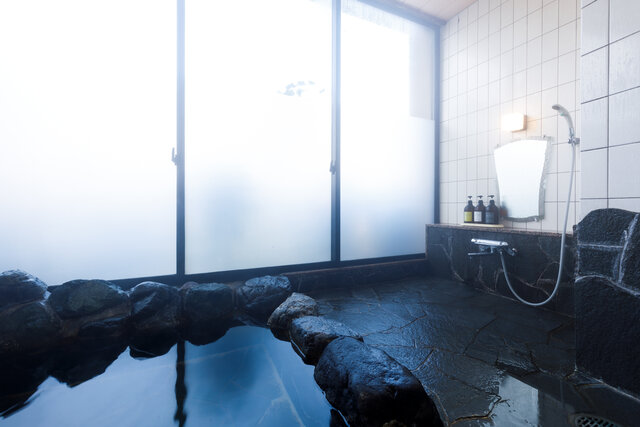 源泉掛け流しの岩風呂で贅沢なひとときを過ごせるのが魅力で、美容ブランドのシャワーヘッドとドライヤーも完備しています。