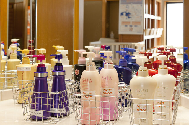 大浴場には男女ともに、4ブランドの高性能ドライヤーを試せるドライヤーバイキングやシャンプーバイキングが用意されています。