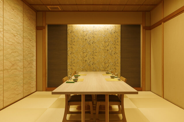 テーブル席または和室の個室で、落ち着いた和風モダンスタイルの空間でゆっくりと食事を楽しめます。
