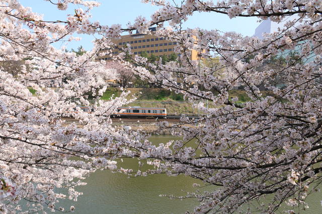 市ヶ谷駅から飯田橋駅にかけては、桜の木がずっと立ち並び、電車と一緒に撮れるスポットが多く撮りやすいんですよ♪