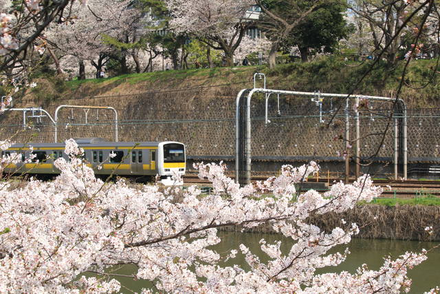 電車と桜の写真は難しいと思いますが、ここは中央線と総武線が往来し、かなり頻繁に通るので、失敗しても何度でもチャレンジができます!