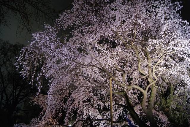 六義園では高さ約15m、幅約20mの大木のしだれ桜が咲き、これを見に多くの人が集まります。