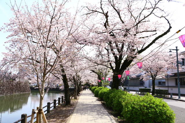 桜とお城の写真を撮るには絶好のスポットで、お堀ならではの水面に映った桜の写真も素敵ですね♪