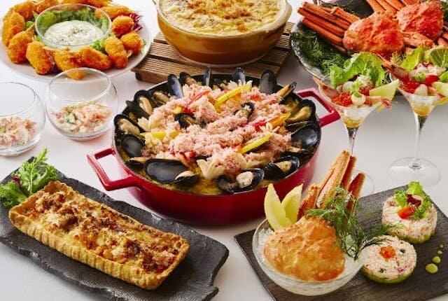 90分制のランチブッフェは、季節によってメニューが様変わり。秋から冬にかけては、本ズワイ蟹が食べ放題のブッフェが開催されます♪