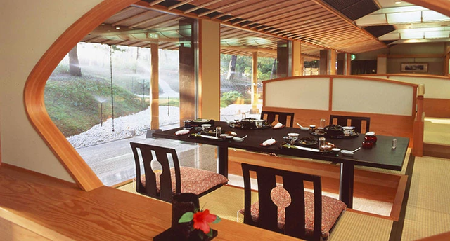 夕食は、掘り炬燵式の「味彩」や庭園に面した「羽衣」などの食事処で。