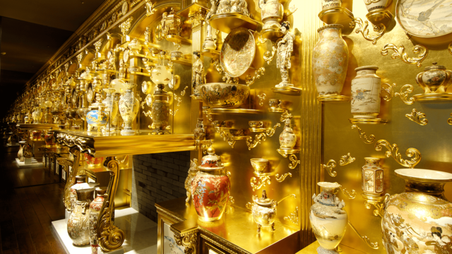 約300点の優れた美術品が展示され、豪華絢爛な金襴手薩摩焼など、見ごたえのある美術品の数々を鑑賞できます。