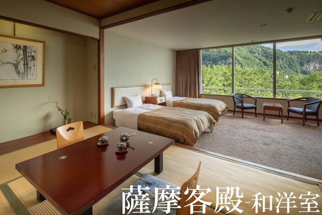 離宮、磯客殿、花の棟、薩摩客殿という4つの客室棟があり、和室、洋室、和洋室といった多様なタイプから選べます。