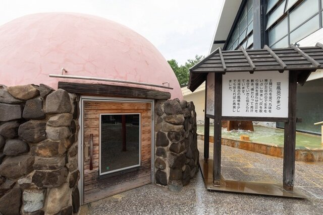 柘榴風呂は蒸し風呂で、湯気を逃がさないように出入口が低く設計されているのが特徴です。