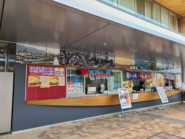 フードコートと売店があり、フードコートでは美しい景色を眺めながら食事ができるカウンター席があります。