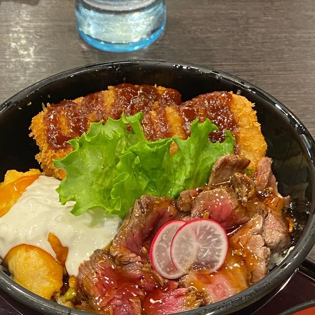 トッピングされるのは、熊本産の「肥後うまか赤鶏のとり天」と「肥後赤牛のステーキ」、そして鹿児島県産の「ロースカツ」。いずれもミニサイズなので、少しずつ味わえるのが嬉しいポイントです!
