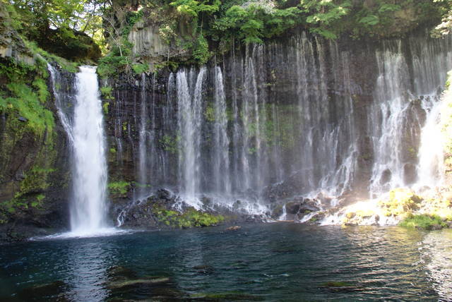 幾筋もの水が流れ落ちそれが白い絹糸のように見える美しい滝です。