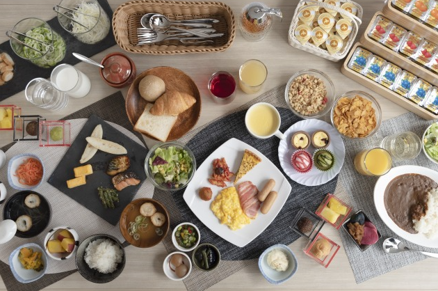 朝食は、6:30から和洋食ブッフェを提供。焼きしそ巻きやあおば餃子など、東北ならではの味覚を楽しめるほか、副菜やサラダバーも種類豊富なので、連泊したい方にもおすすめです!