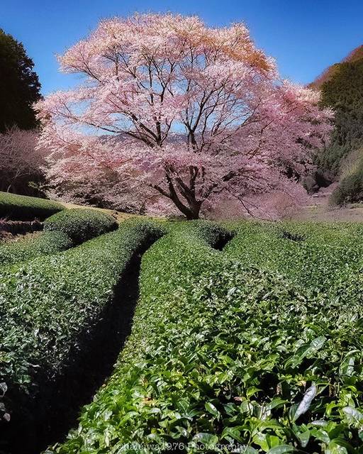 茶畑と桜のコラボは珍しい風景で、穴場中の穴場の桜絶景です。