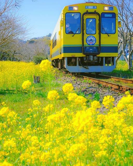 周りの菜の花とのコントラストが非常に美しく、毎年多くの人がお花見に訪れます。