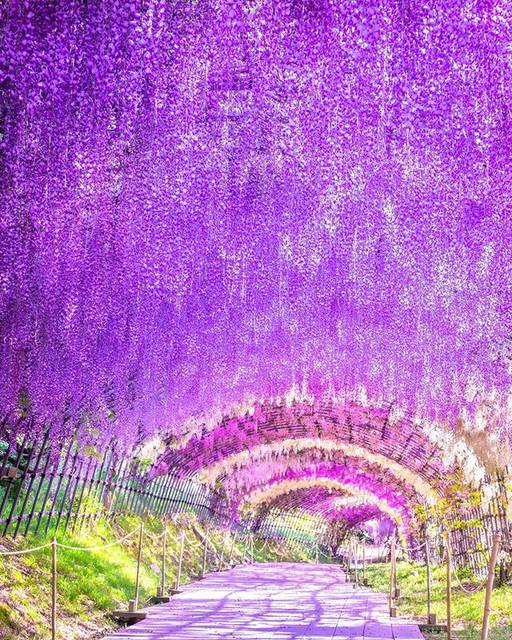 最大の見どころである藤のトンネルは圧倒的な存在感で、まるで紫一色の世界に包まれたような気分に♡