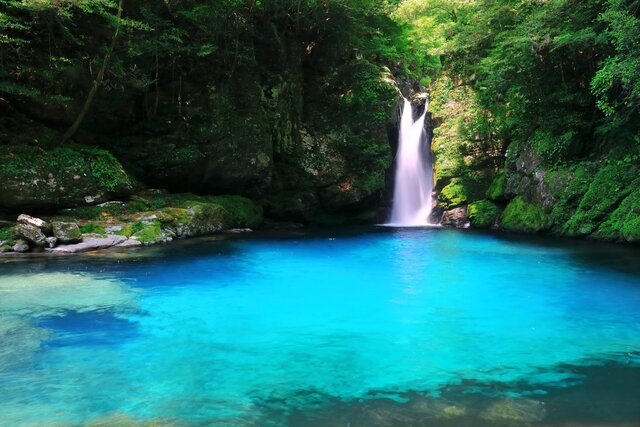 高知県屈指の絶景・仁淀川の上流部にある、幻想的な滝つぼ。水神の化身である大蛇が棲むという伝説が残っており、地元で神聖な場所になっています。