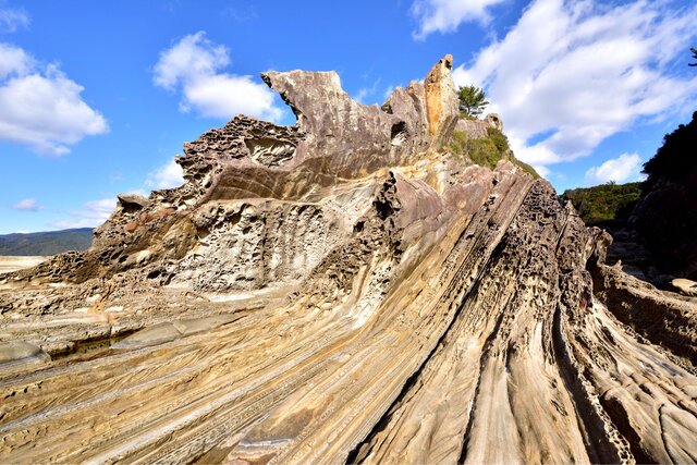 竜串海岸にあるダイナミックな奇岩群。約1,700万年前に荒波の侵食によって形成されたものであり、代表的な奇岩にはそれぞれ名前も付けられています。